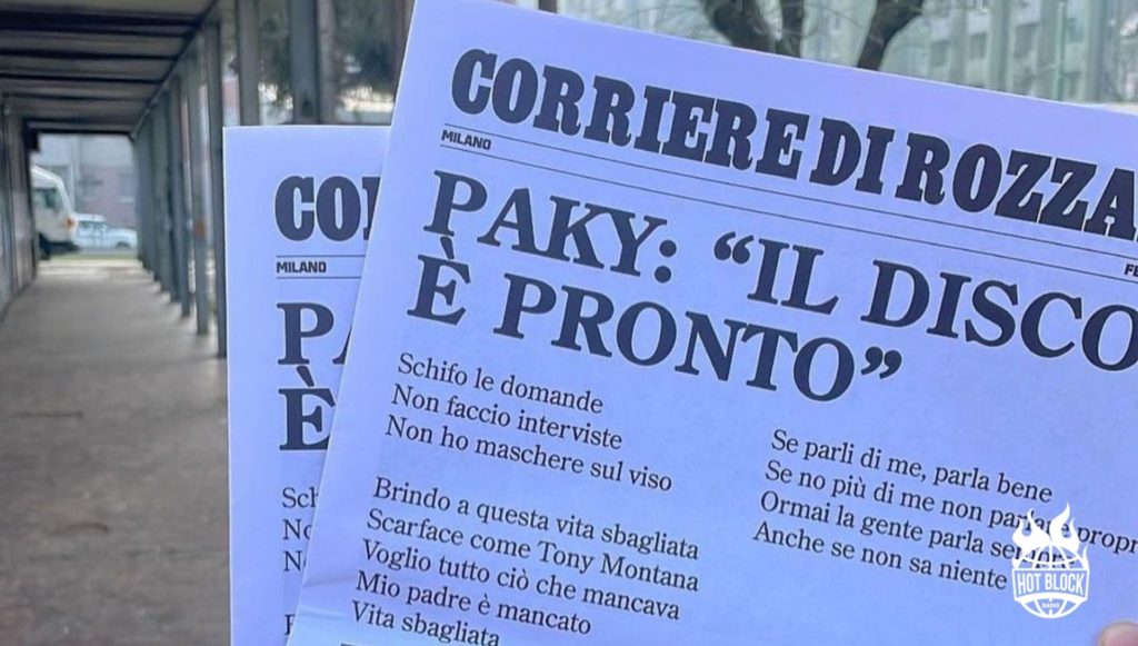 In giro per Milano sono apparsi alcuni giornali con il titolo ”Il corriere di Rozzano”. Sul ”giornale” @pakyglory, che annuncia l’imminente arrivo del disco…